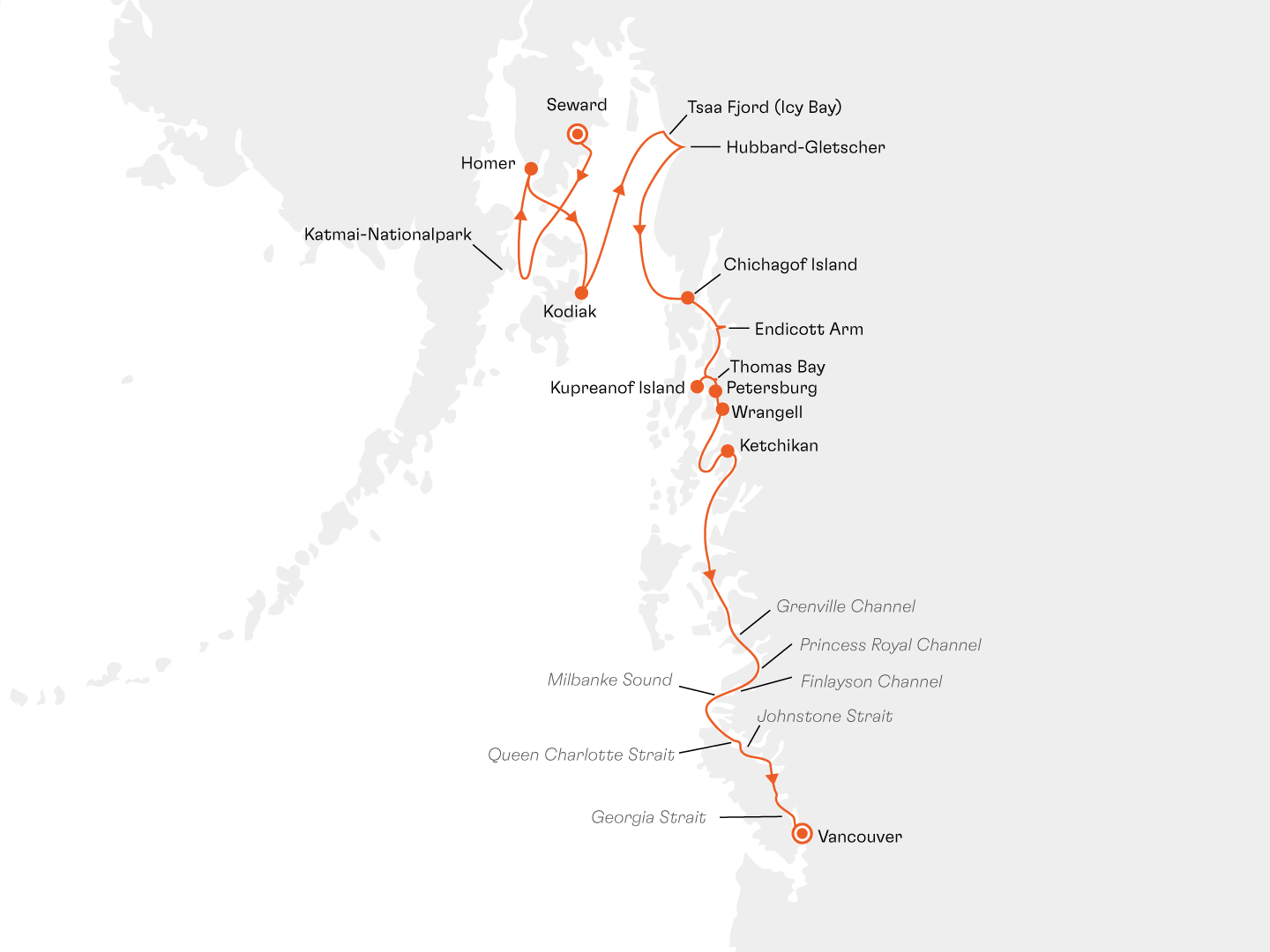 Alaska (Inside Passage Kurs Süd) – Abenteuerkurs durch ungebändigte Natur Kreuzfahrt