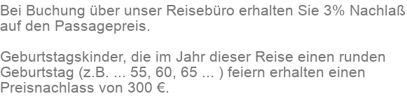 *auf die Kreuzfahrtpassage außer Costa, Mein Schiff und Aida Kreuzfahrten