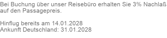 Schiffsreisen und Kreuzfahrten January 2028 bieten wir Ihnen bis zu 70 % reduziert an. Wählen Sie das passende Kreuzfahrt-Angebot für January 2028 aus und buchen gerne auch direkt bei einem unserer Kreuzfahrt-Experten unter der Telefonummer 09724 90731-0